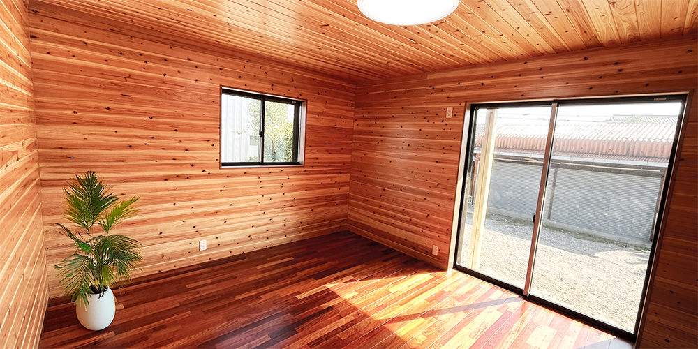 天井と壁に杉板を張った「木の部屋」
