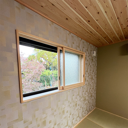 レトロな雰囲気のある柄付きガラスを内窓として再利用