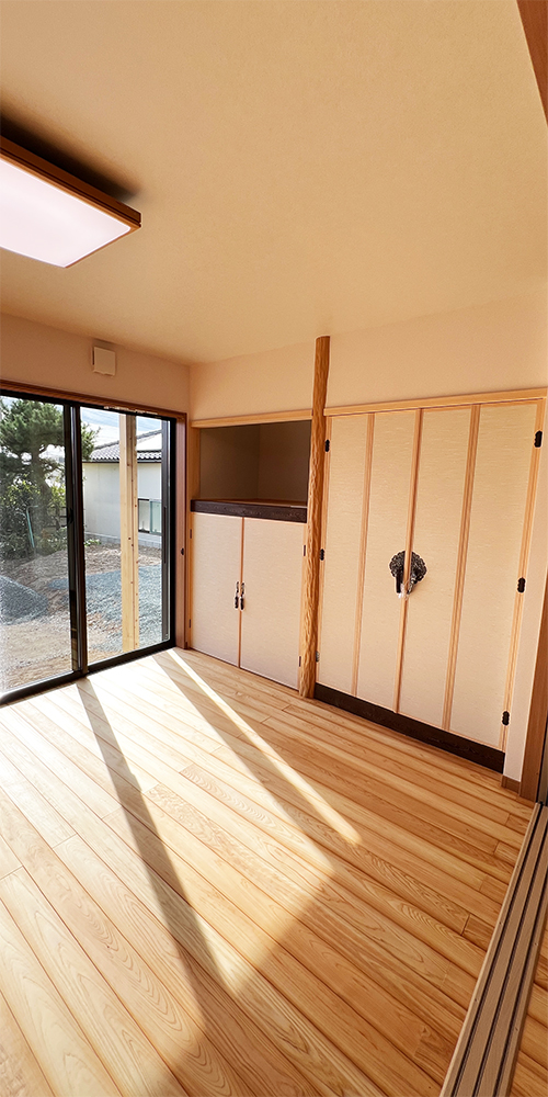 南向きの深い軒が夏の陽射しを遮り 冬の低い陽を効率よく採り入れる、木の香りが心地よい平屋