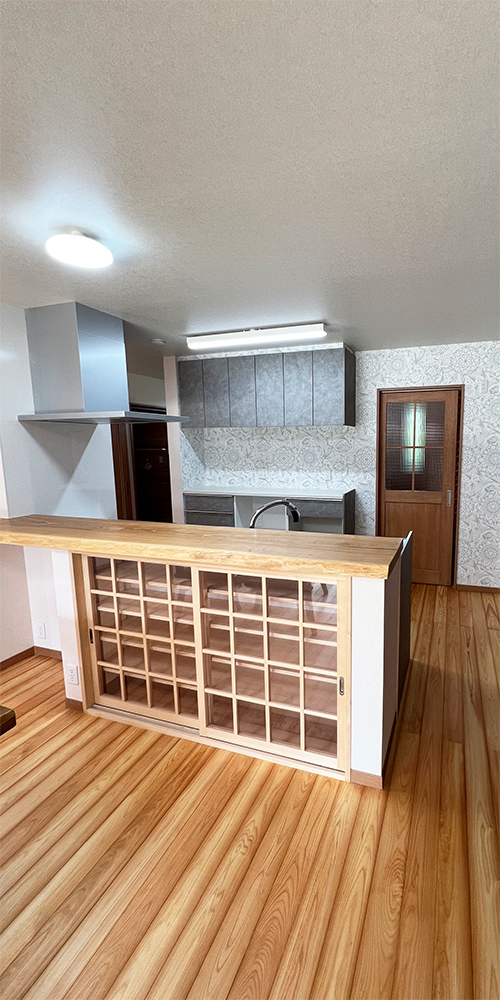 キッチンカウンターの下に造り付けの建具